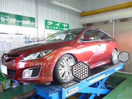 以前に車高調を取り付けて約1ヶ月慣らし走行したとのことで、アライメント調整しにご来店されました。しかし、タイヤの交換時期が近かったのでせっかくアライメントを調整するなら交換しましょうと、現在装着されてたタイヤがPOTENZA RE050AだったのでPOTENZA S001をオススメしたのですが、乗り心地を重視したいとのことで 215/50R17REGNO GR-XTに交換しました☆