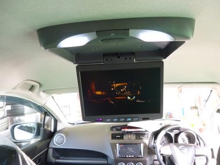 今回新型ラフェスタにフリップダウンモニターの取付けを行いました。