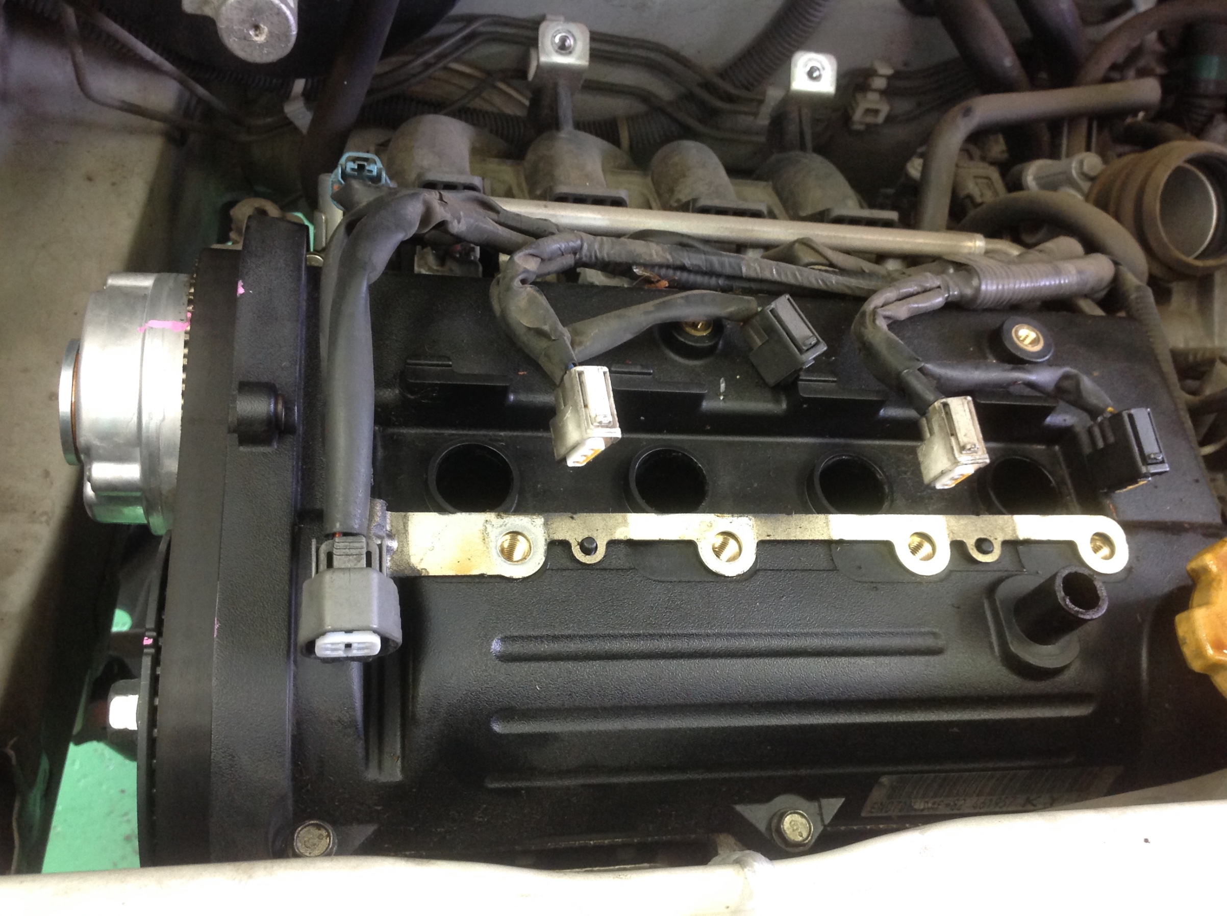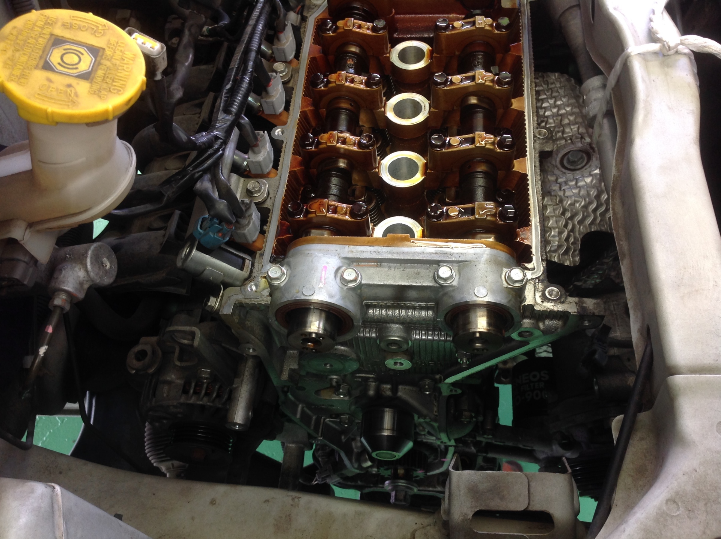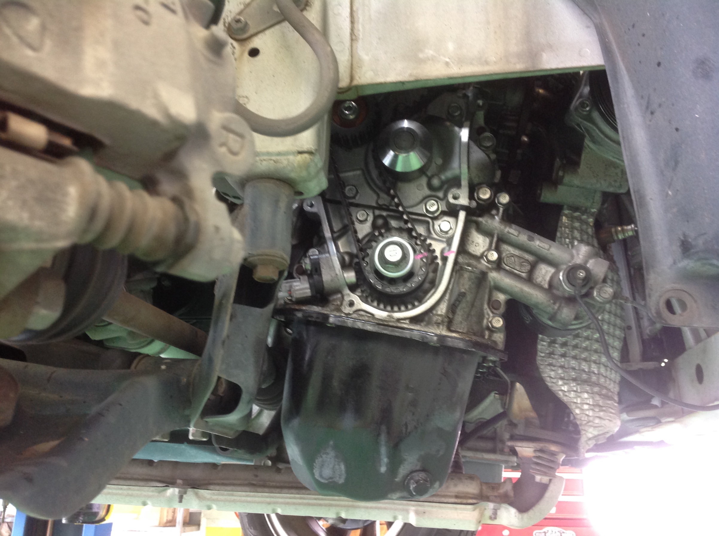 タイミングカバー取り外し。結構オイル漏れもおきてますね。