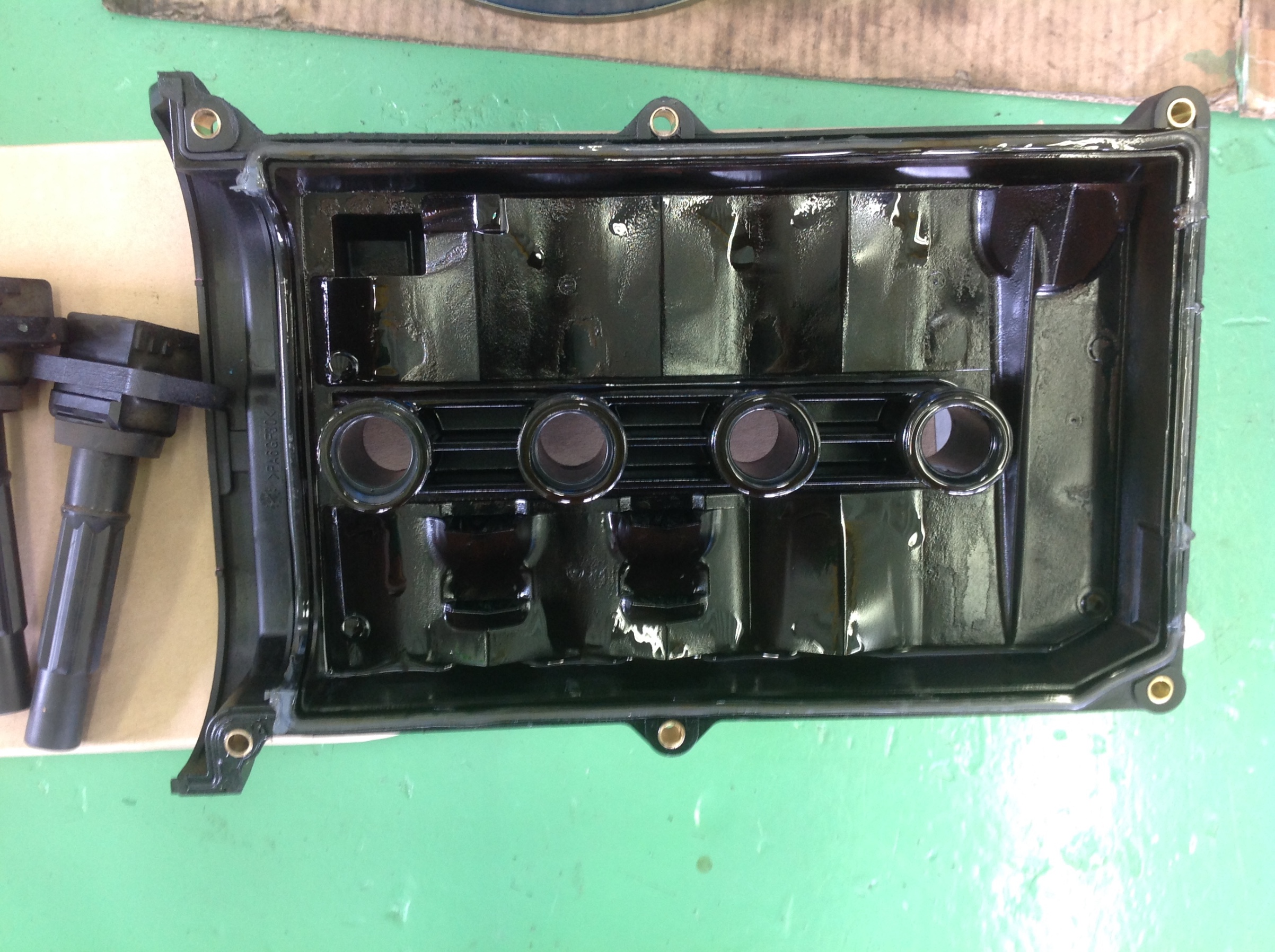 プラグホールの中にオイルがなみなみです。