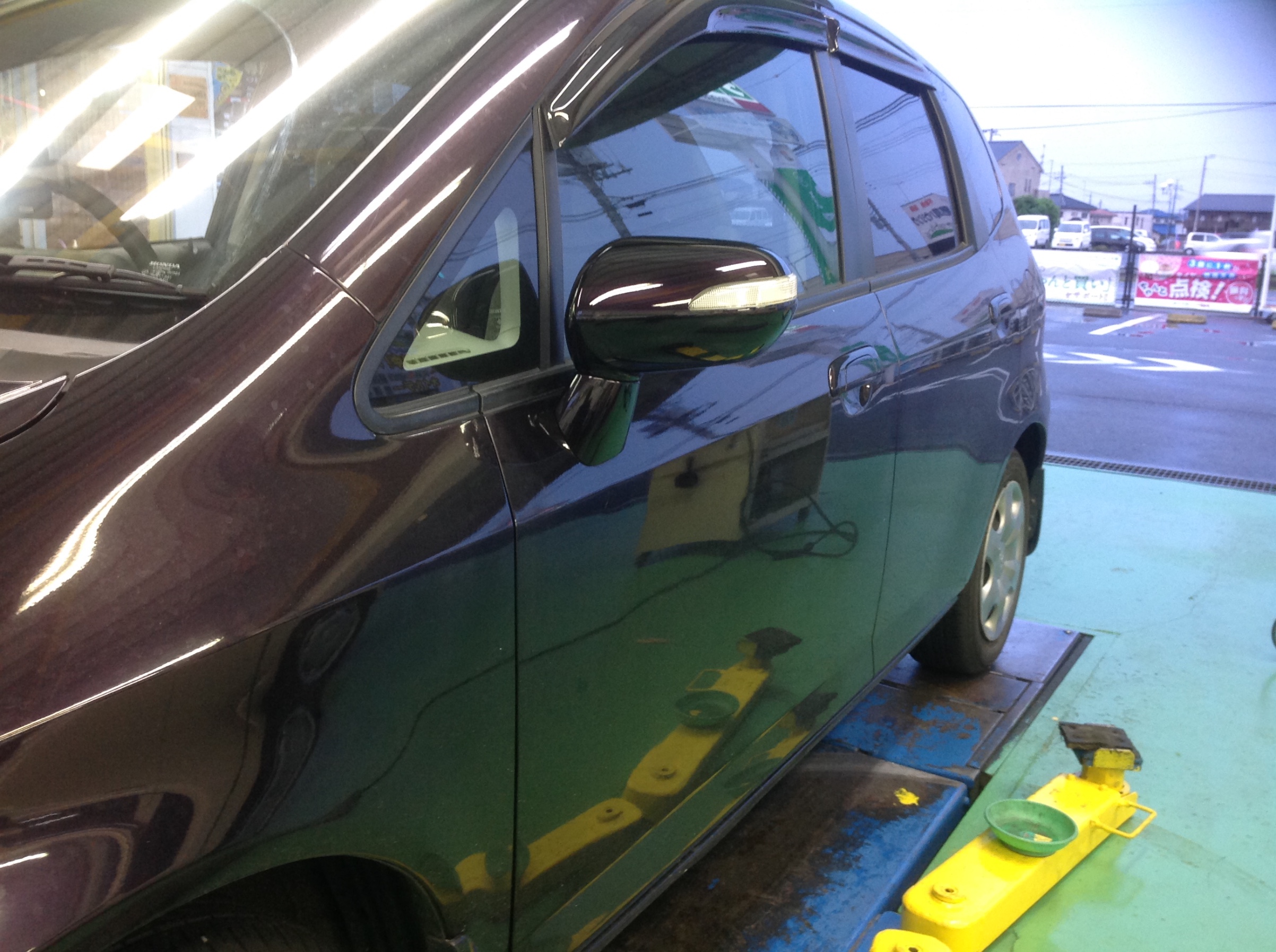 今日はですね、Fitのドアミラー交換のお客さまが御来店です。