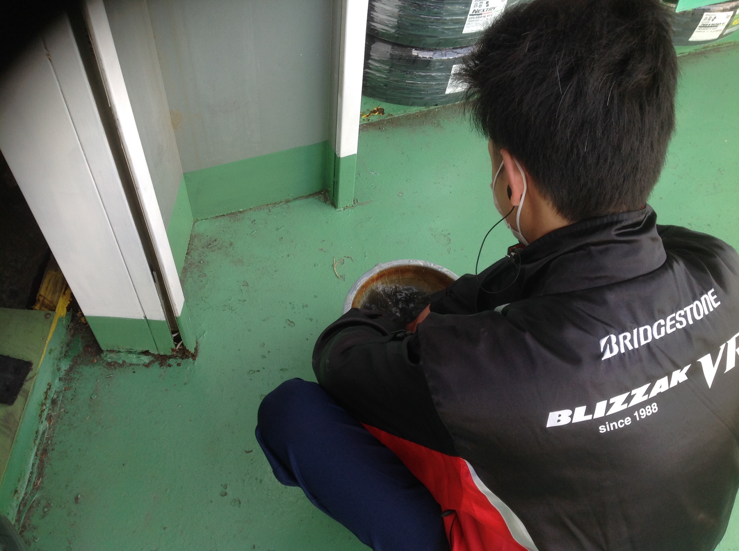 タイヤ拭きをしている坂場君を盗撮( ゚д゚)坂場君のお陰で、タイヤも綺麗になりましたv(^_^v)♪皆様のご来店お待ちしております。
