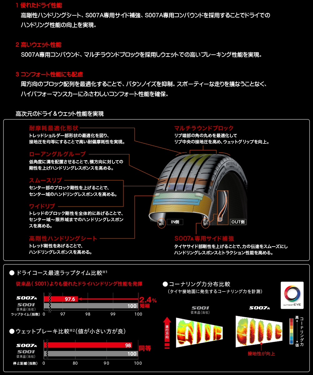 モータースポーツシーンで培われたドライ&ウエットパフォーマンス、上質な走りを追求したコンフォートパフォーマンスを、お楽しみ下さい!