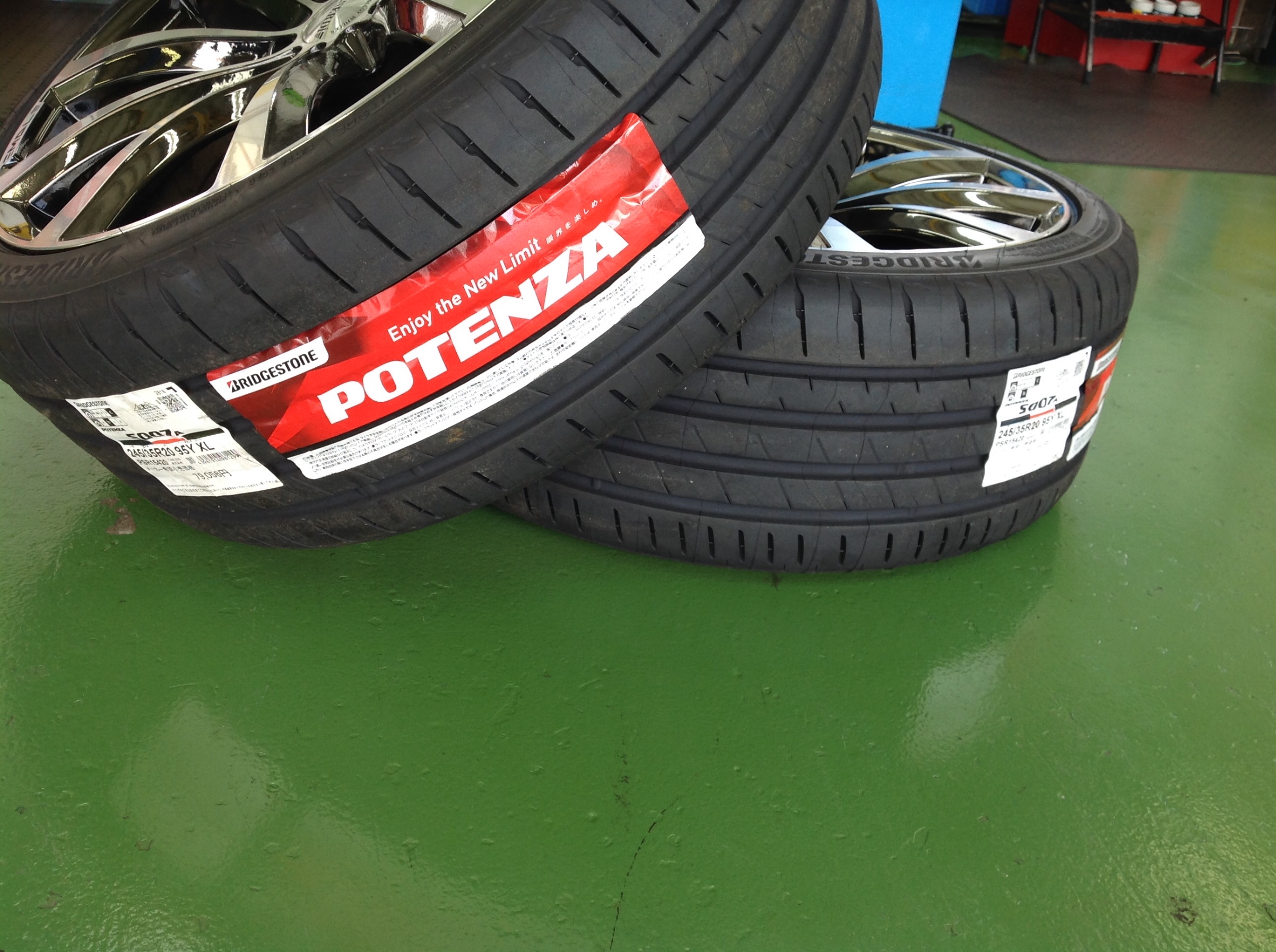 大きいサイズは一際目立ちます。お車に取り付けてからの写真はスミマセン、忘れてしまいましたm(__)mしかも取り付けからの〜アライメント調整もさせていただきました。調整もバッチリでございます。良いタイヤをより長くお乗りただけるように私めティカセが調整させて頂きましたm(__)m次のご来店は100km点検でおまちしております。