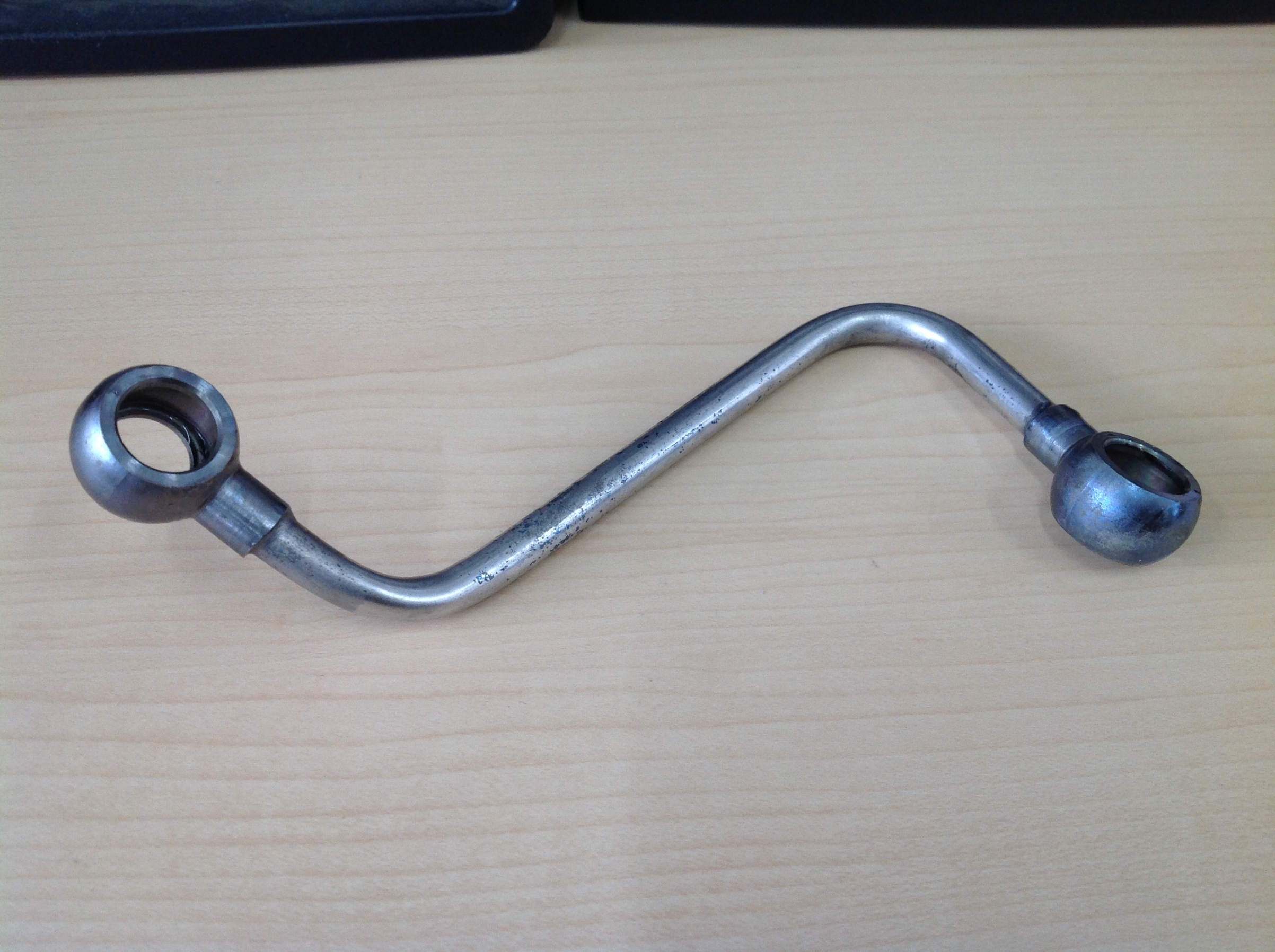 今回は水温計が上がってしまうとの事でお預かりいたしました。水温が上がる原因は何個かありますが、、今回はこの部品が、、タービンに付いているパイプですね。これのなにが原因なのか?