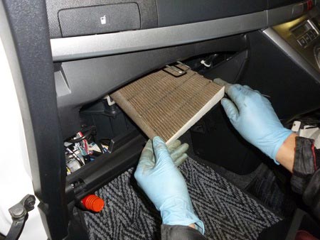 交換の目安は1年、もしくは10,000KM走行後です。(汚れのひどい地域の走行においては早めの点検をおすすめ致します)