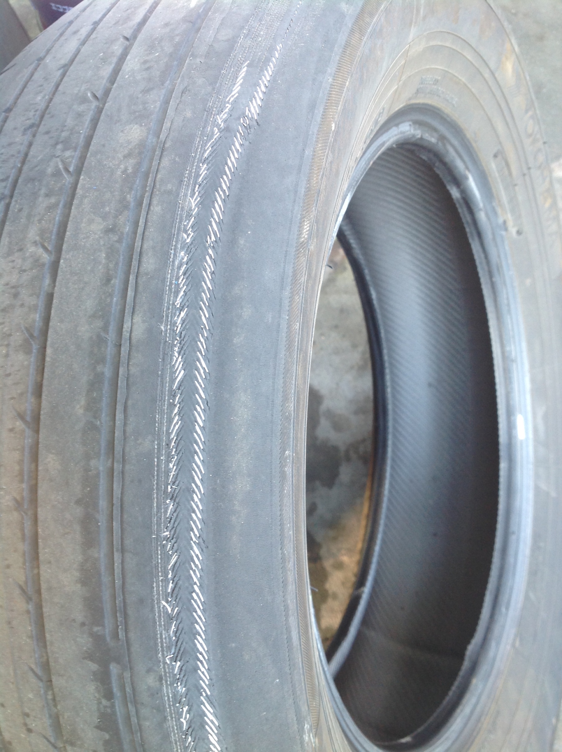 タイヤを確認したところこんな状態に!しかもタイヤを購入してまだそんなに経っていない様です。早速タイヤを交換してアライメントにはいります。測定してみたところフロントのトゥが開きすぎている状態です。人間で例えるならガニ股な状態ですね。このままではタイヤを交換してもまたすぐになくなってしまいますので調整させて頂きました。