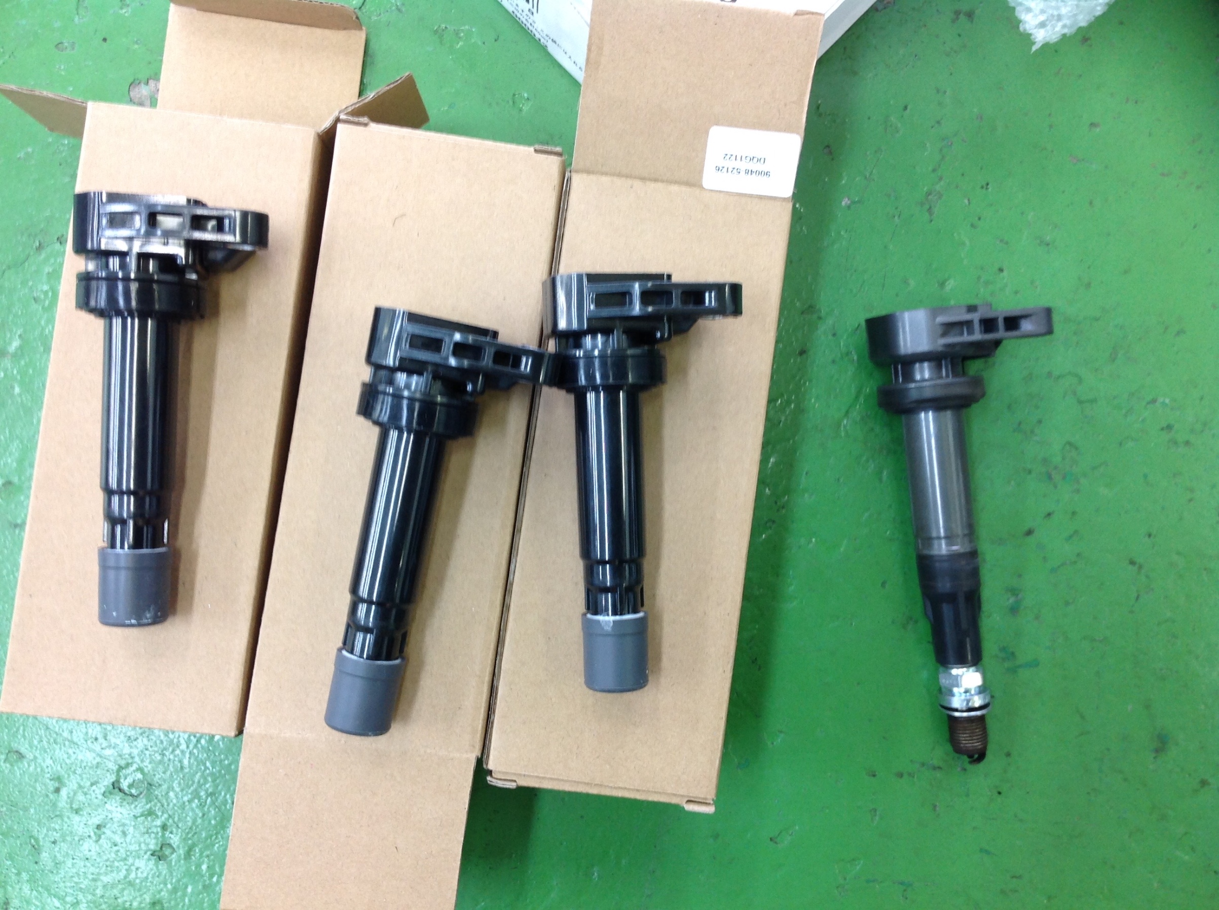 原因がこちらです。コイルの点火不良ですね。プラグも交換された事がないとの事でしたので一緒に交換します。