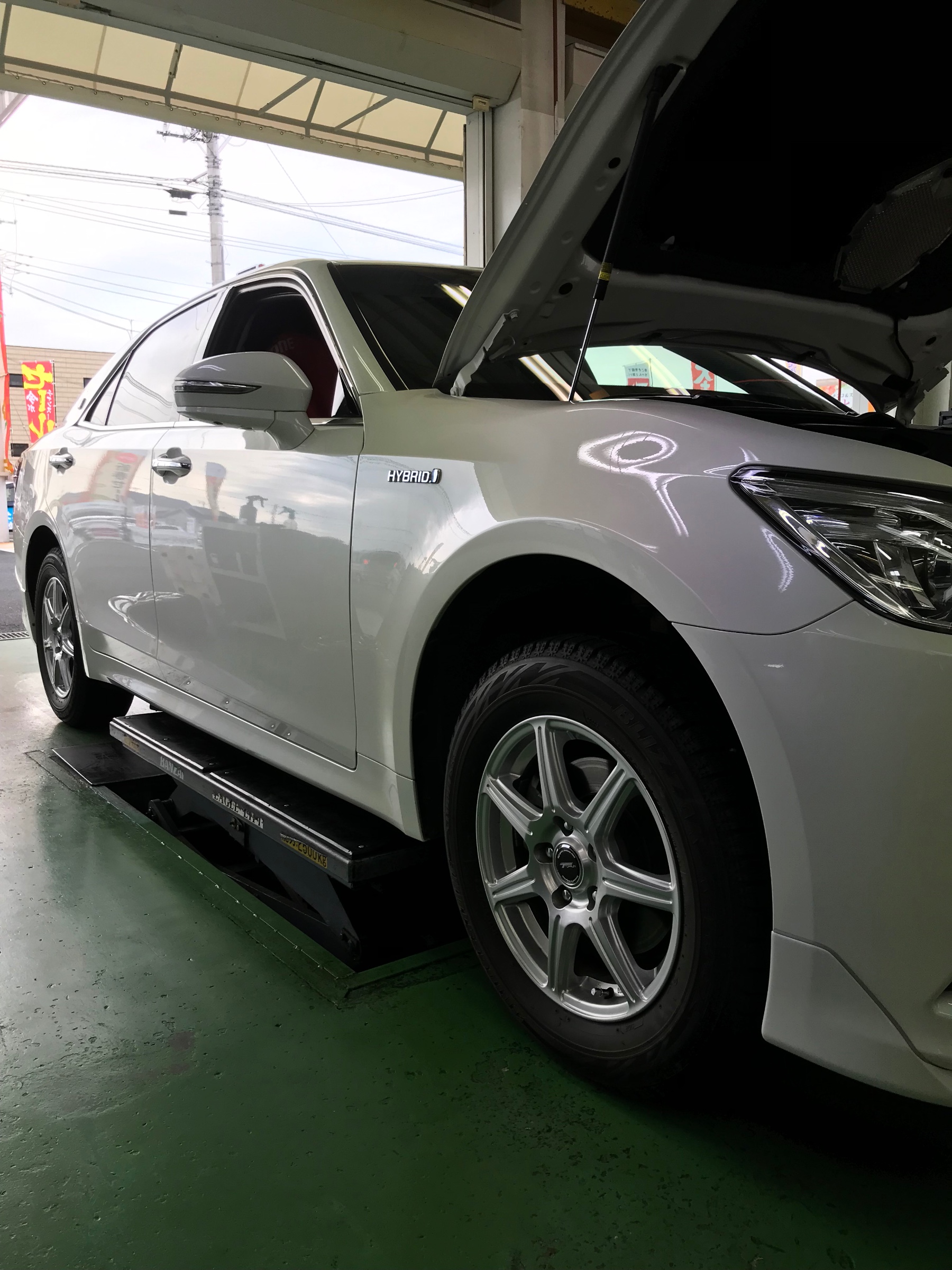 さて、クラウンHVが履き替えとオイル交換にご来店してくださいました。まだまだ凍結の恐れがありますので、スタットレスに履き替えて安心安全をと思います( ^ω^ )