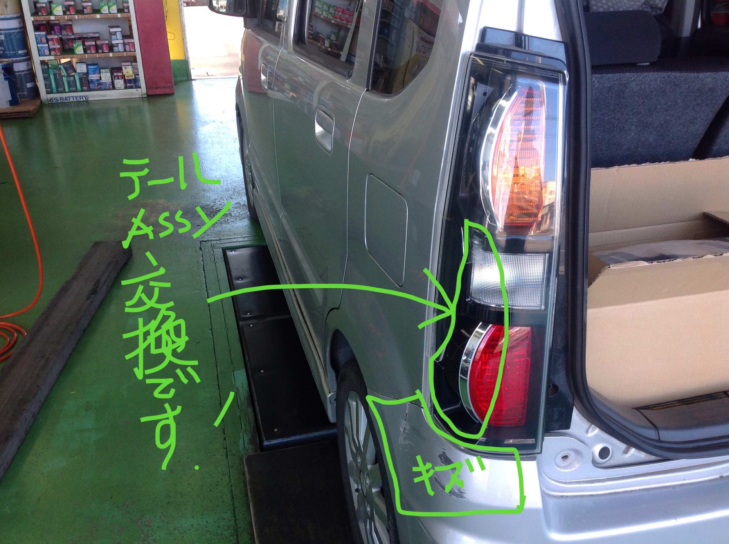 バンパーは結構な値段なので今回はテールのみとのことです。純正部品入荷、取り付けて終了です。