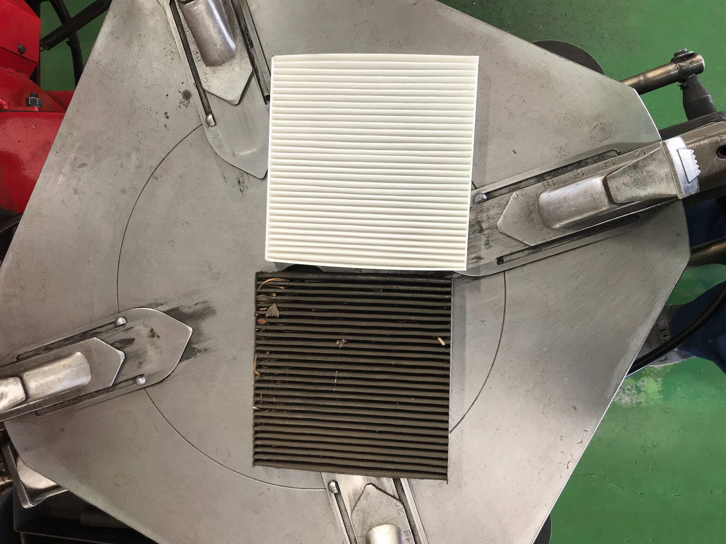 皆さんの愛車君に付いている(年式、お車に寄っては付いていない事もあります)エアコンフィルターをご存知でしょうか?お車の中の見えない所にひっそりといるんでげすよ。。。それがこちら↓白い方が新品。くろーくなっているのがお車から外したフィルターです。。。