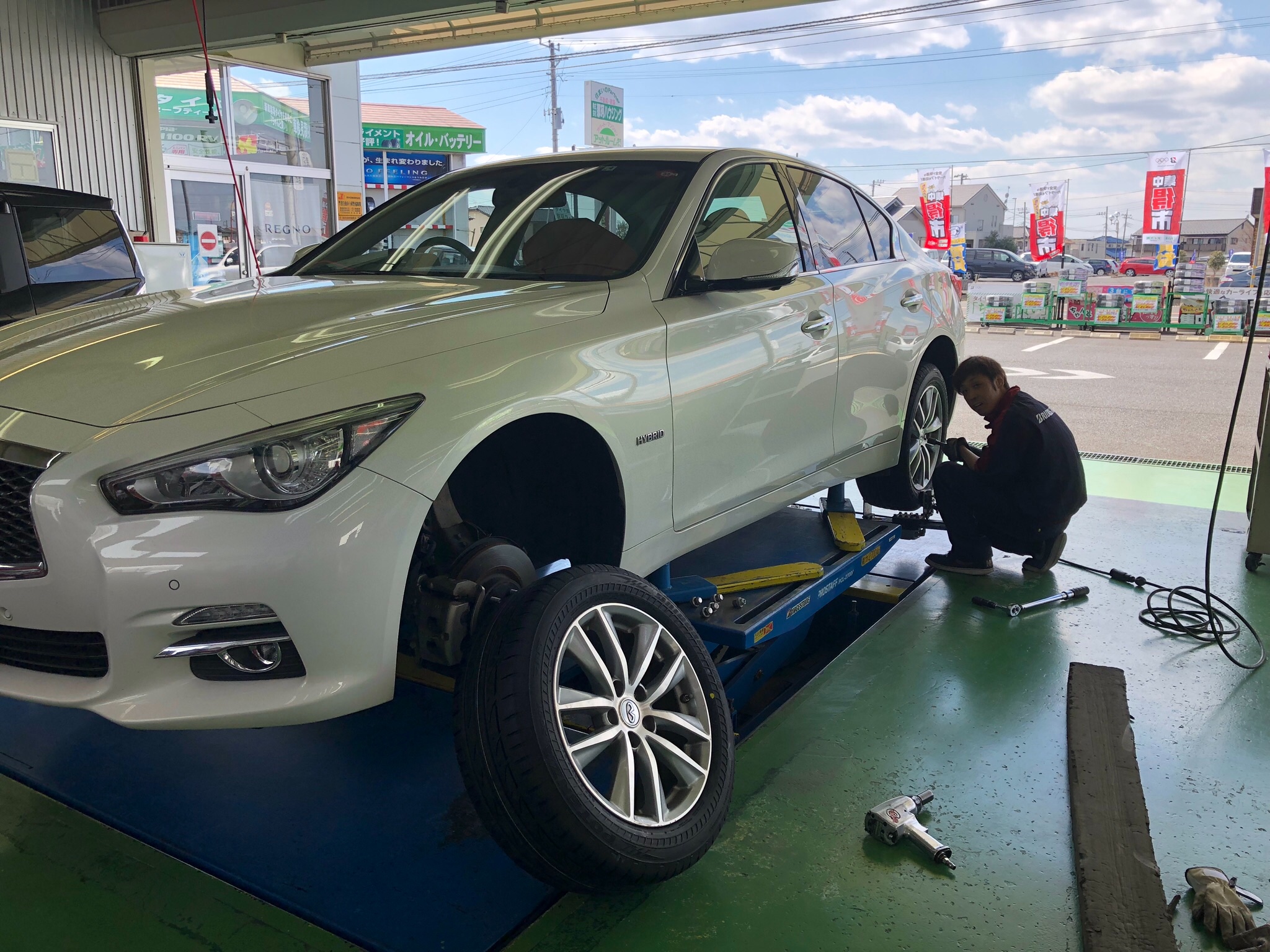 V37スカイライン タイヤ交換 アライメント