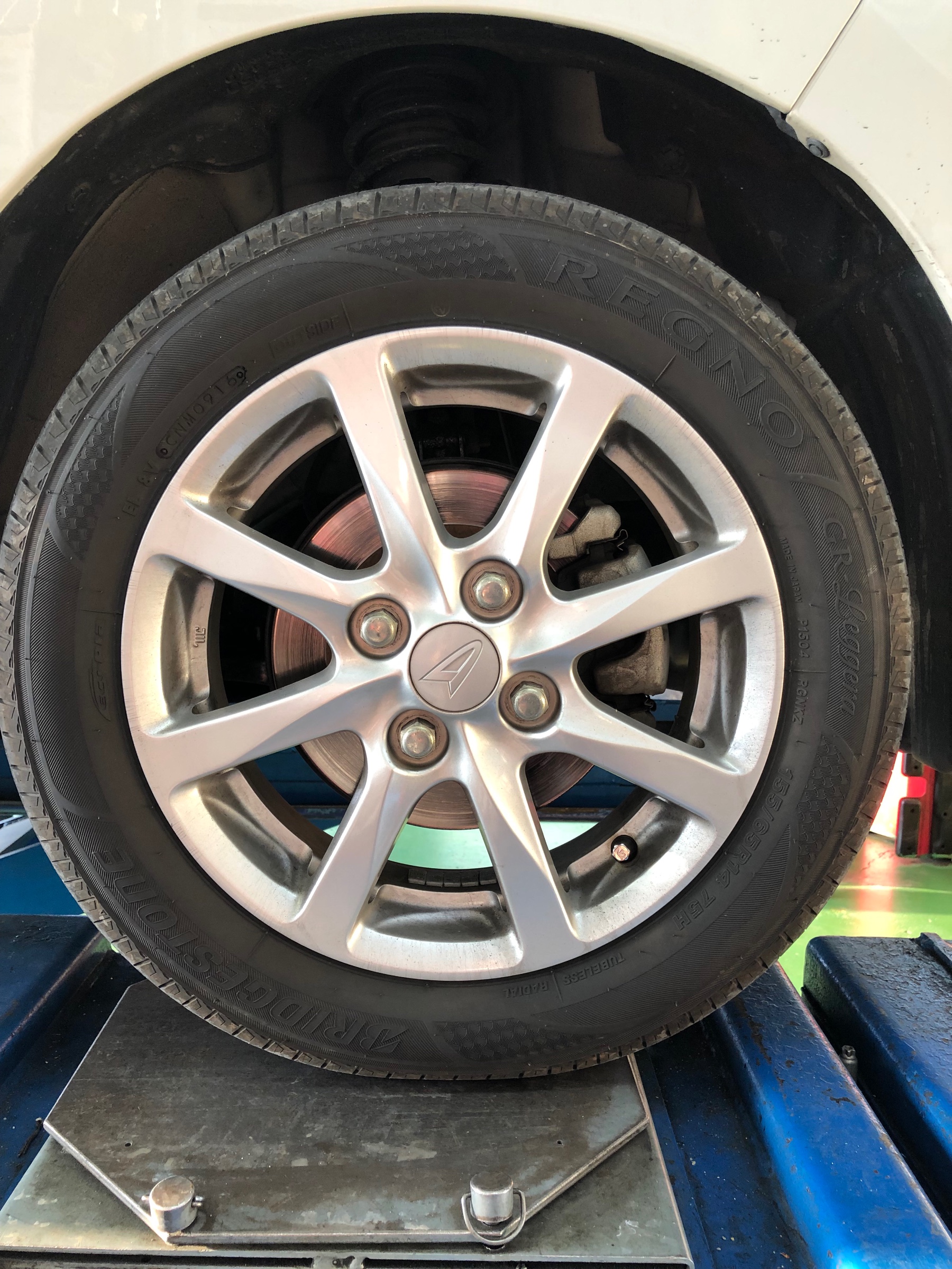今回新品タイヤ購入とともアライメントも実施しました。長持ちプランをつけさせていただきました。