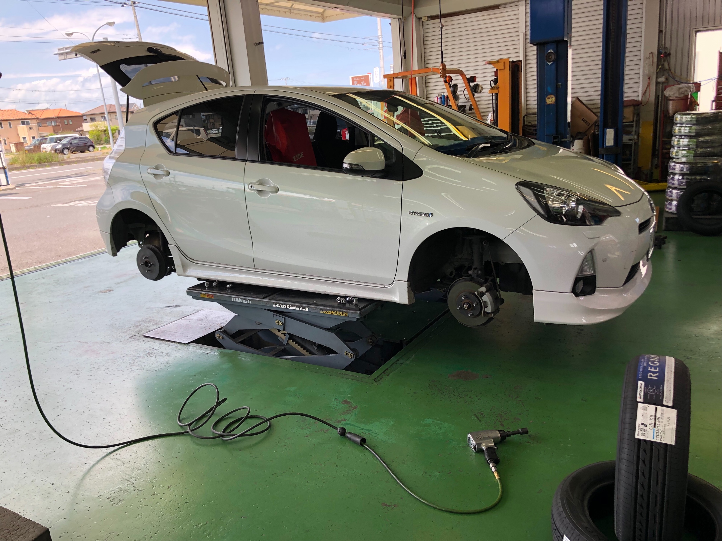 アクア タイヤ交換でご来店です