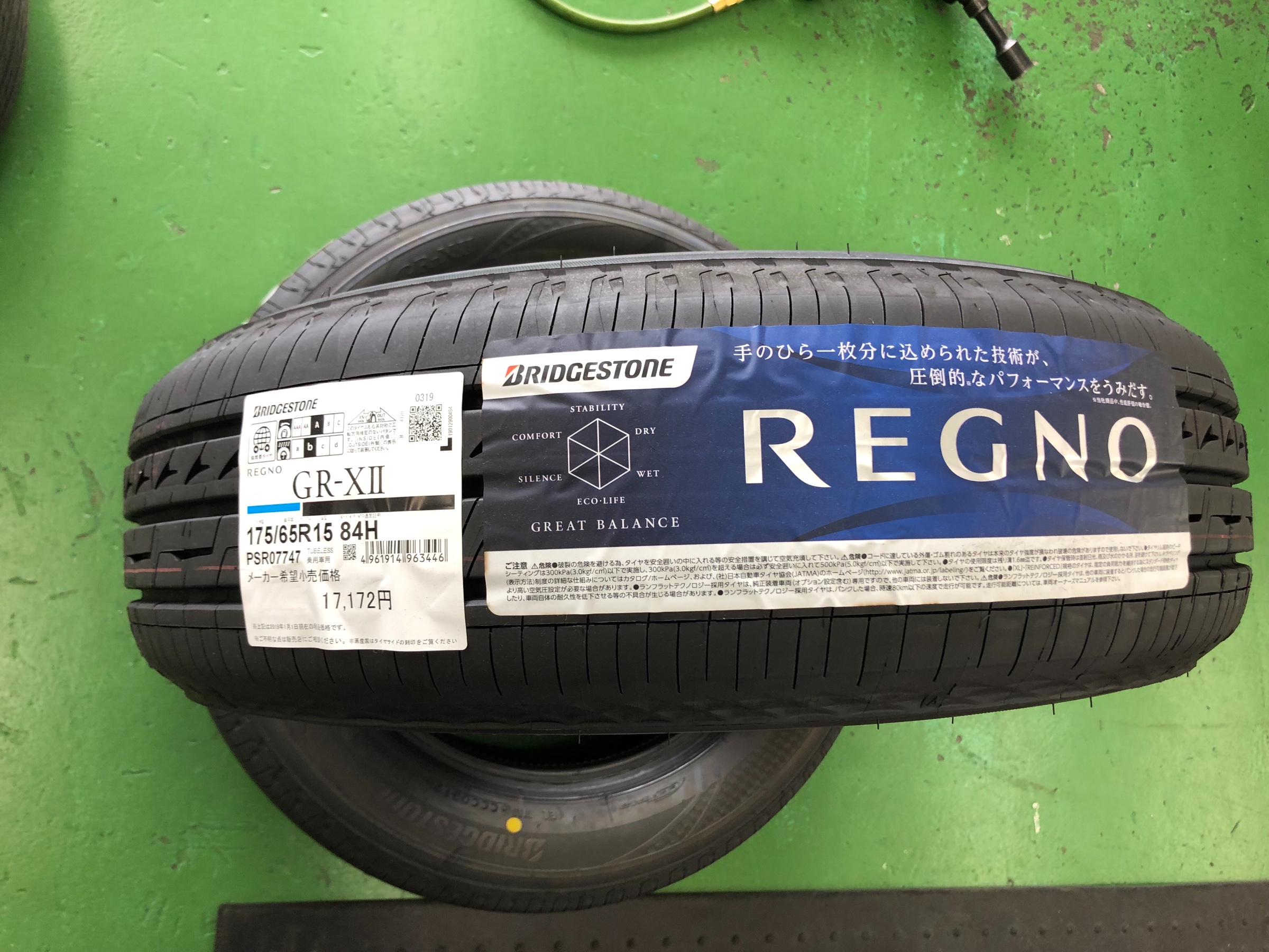 元々履いていたタイヤがREGNO GR-XIだったのですが遠出をする事が減った為タイヤのグレードを落としたいとの事でしたがロードノイズを感じたくないとの事でしたので現行モデルのGR-XⅡをオススメさせて頂きました。