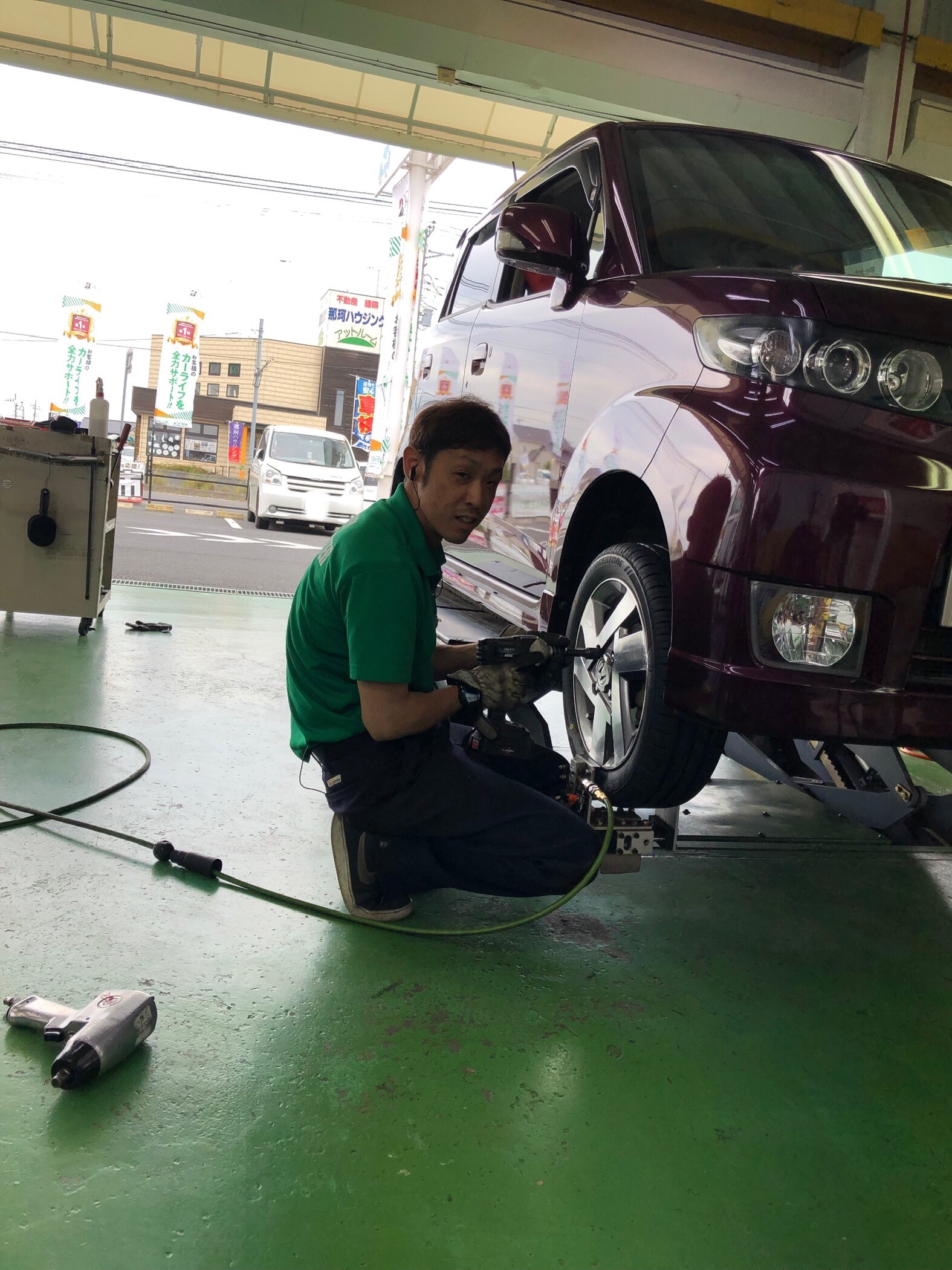 窒素ガスとセンターフィットをセットでやらせていただきました。カメラ目線の高瀬副店長と
