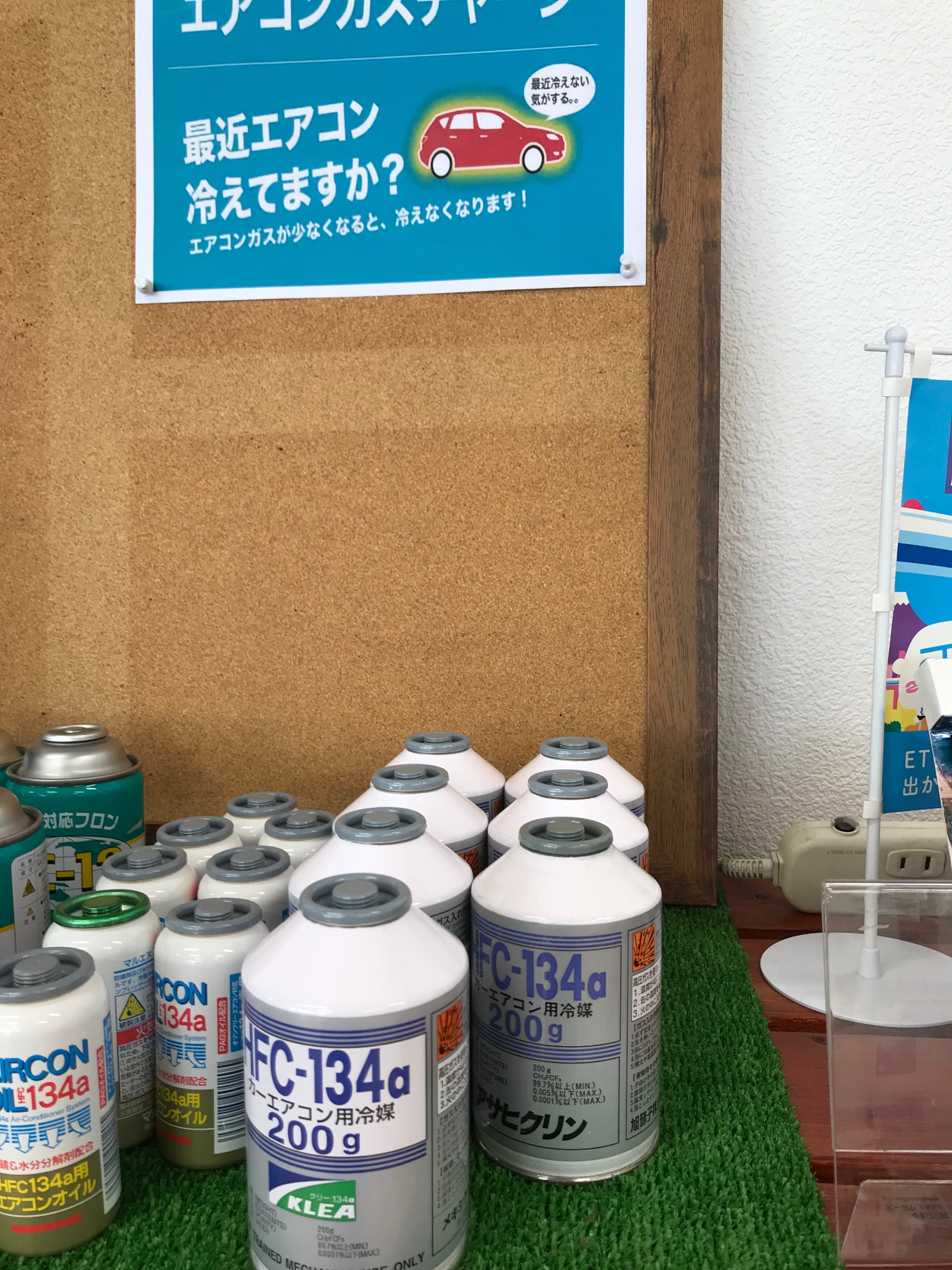 皆様のお車のエアコンはバッチリ冷えてますか!?冷えがイマイチなぁーと言うお客様!!当店でもエアコンガス点検いたしますのでお気軽にお申し付けください(^^)