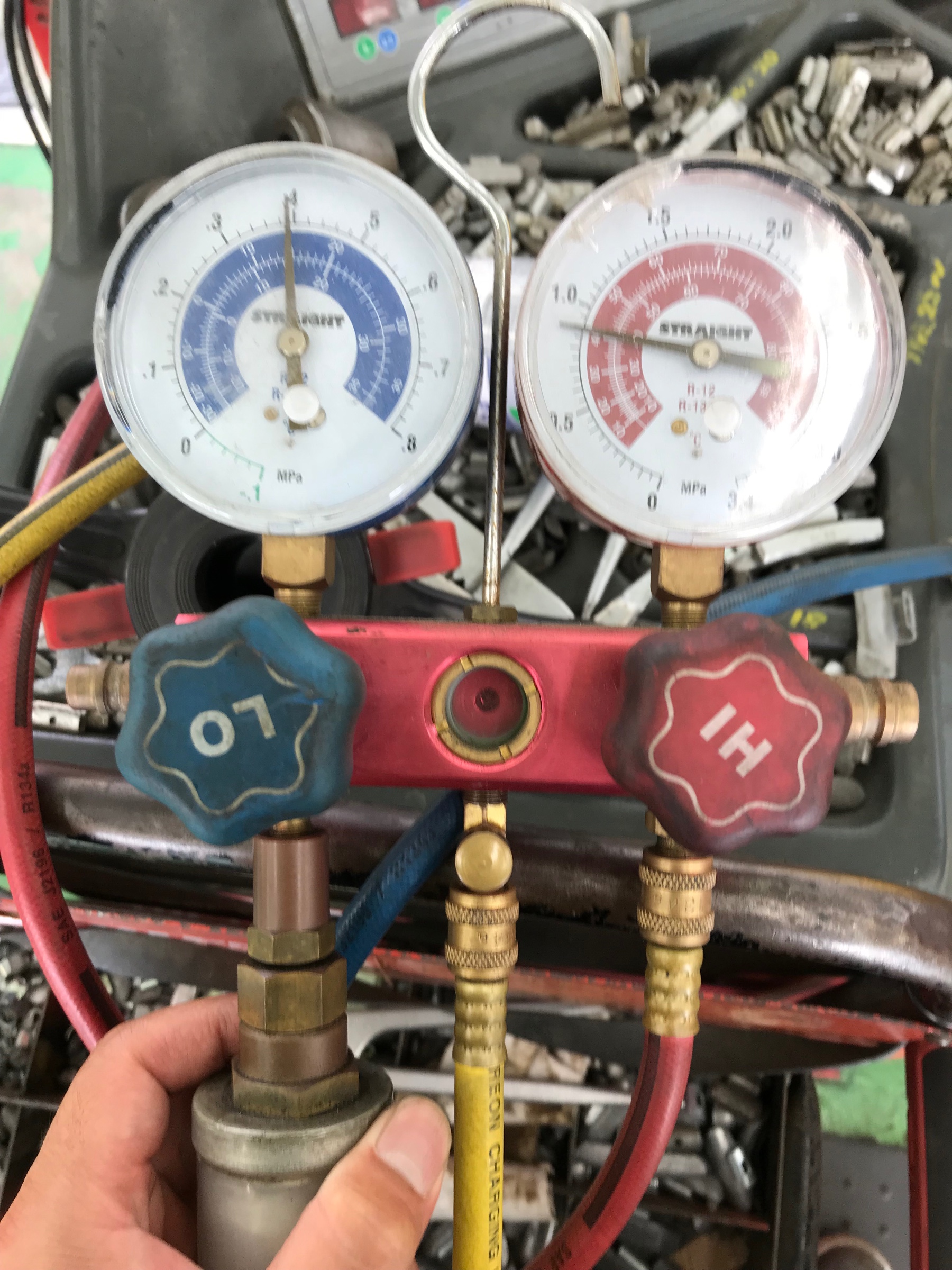 専用のマニホールドゲージをお車に装着してガスチャージいたします!車種によっては作業が出来ない場合もございますのでスタッフまで(^^)