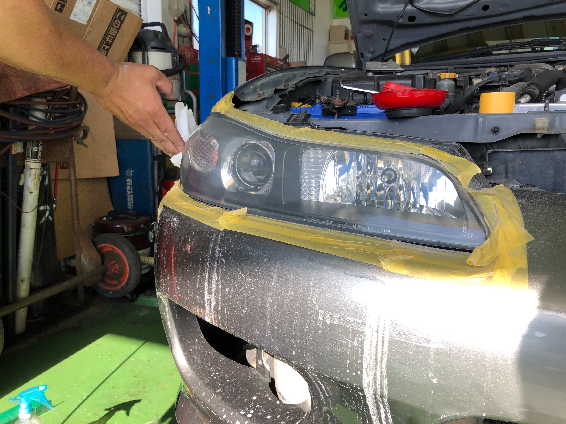 今回ヘッドライトの黄ばみ等がありコーティング施工やって行きます。