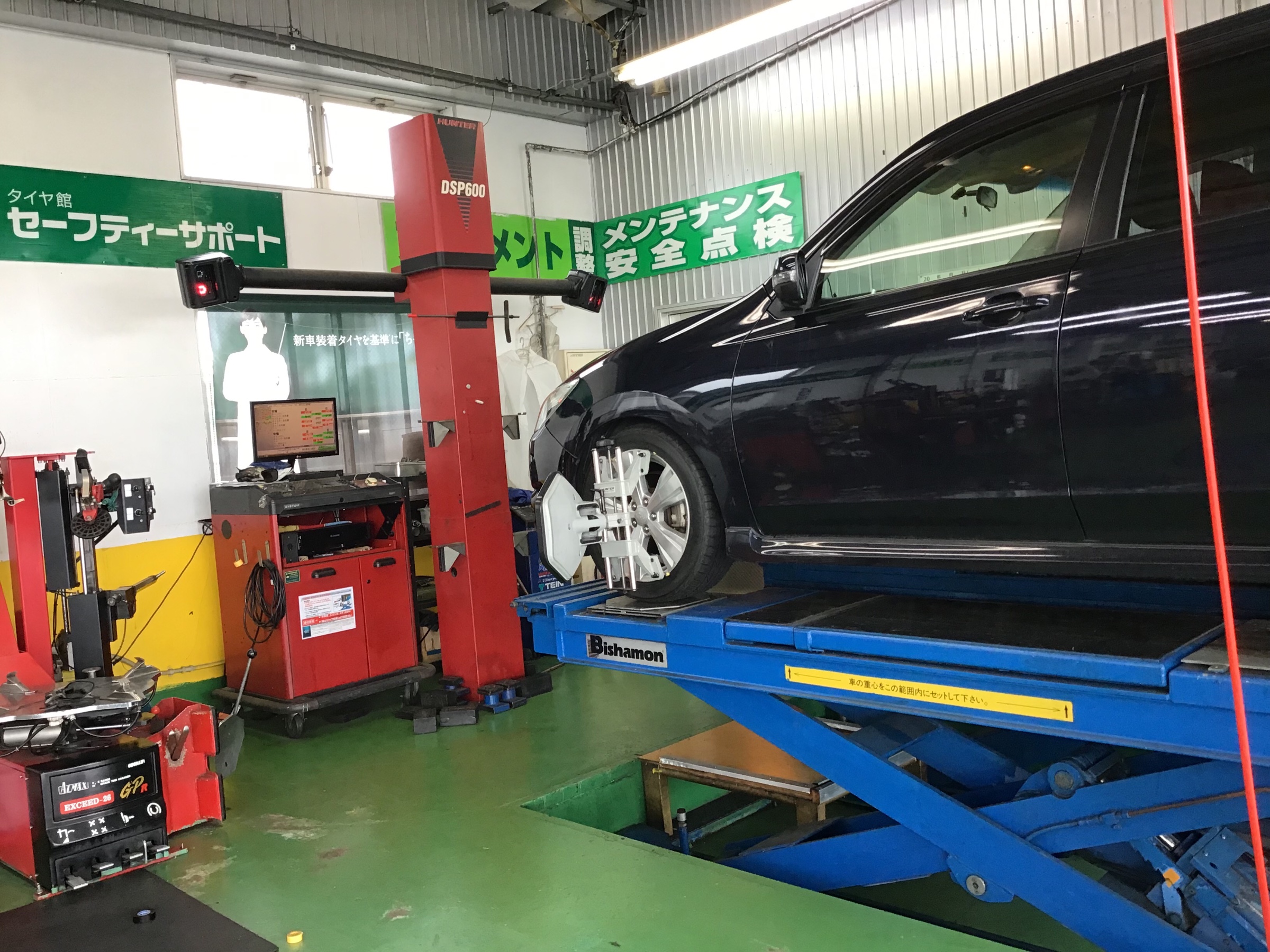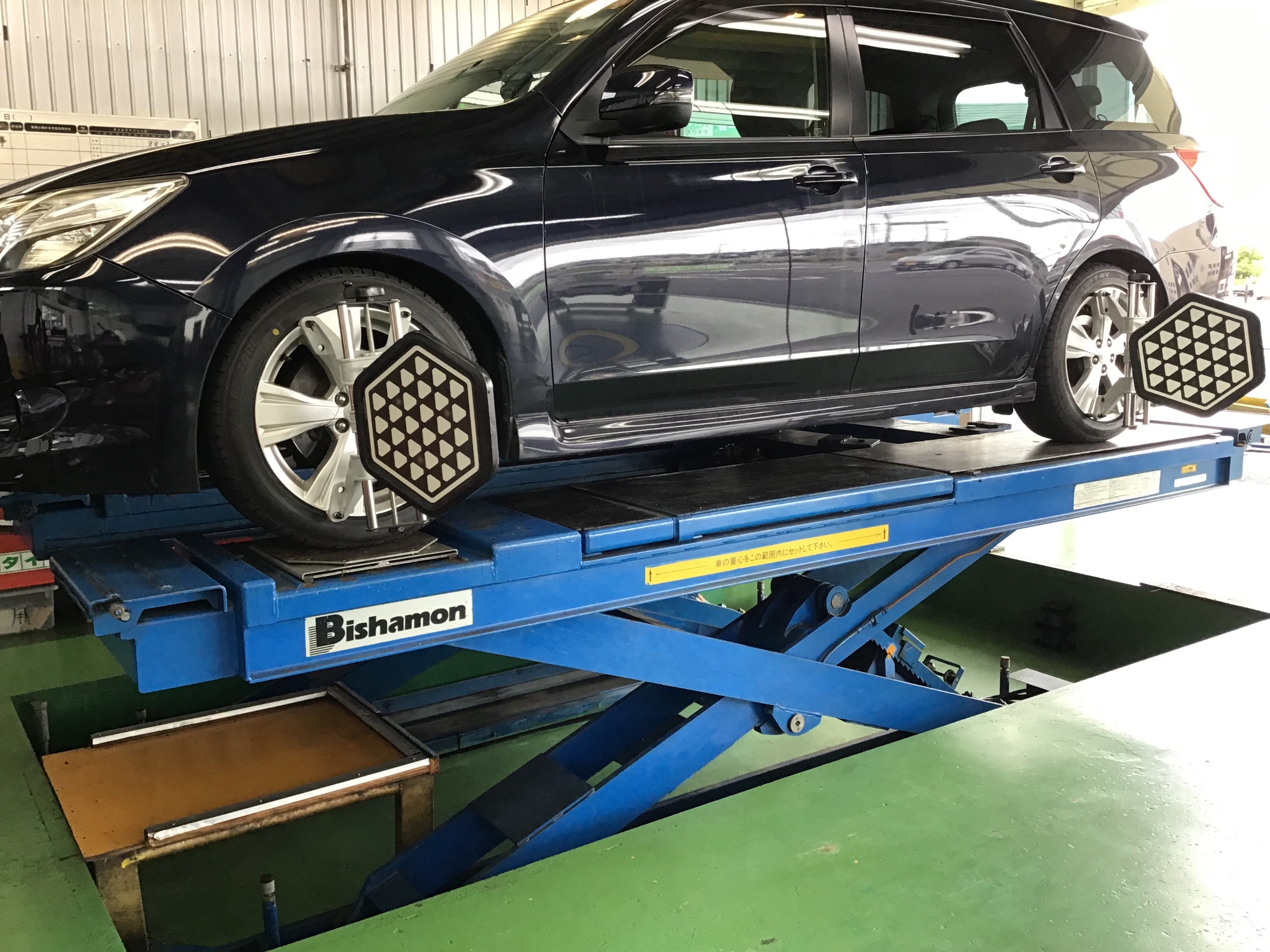 車高調を取り付けしてからアライメントをとっていないということで紹介がありご来店くださいました。