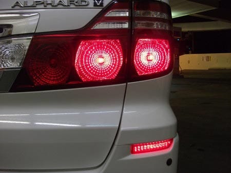 テールランプはブレーキを踏むと外側しか光らないので