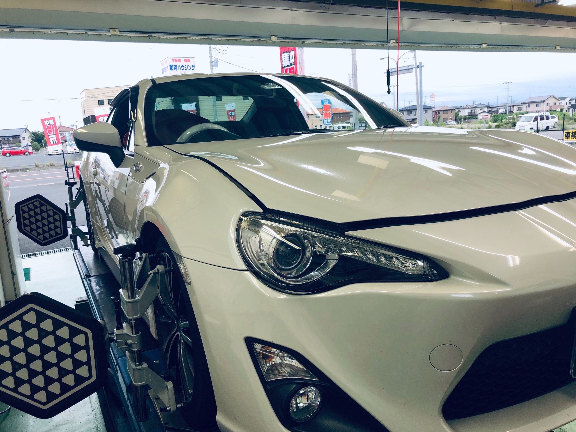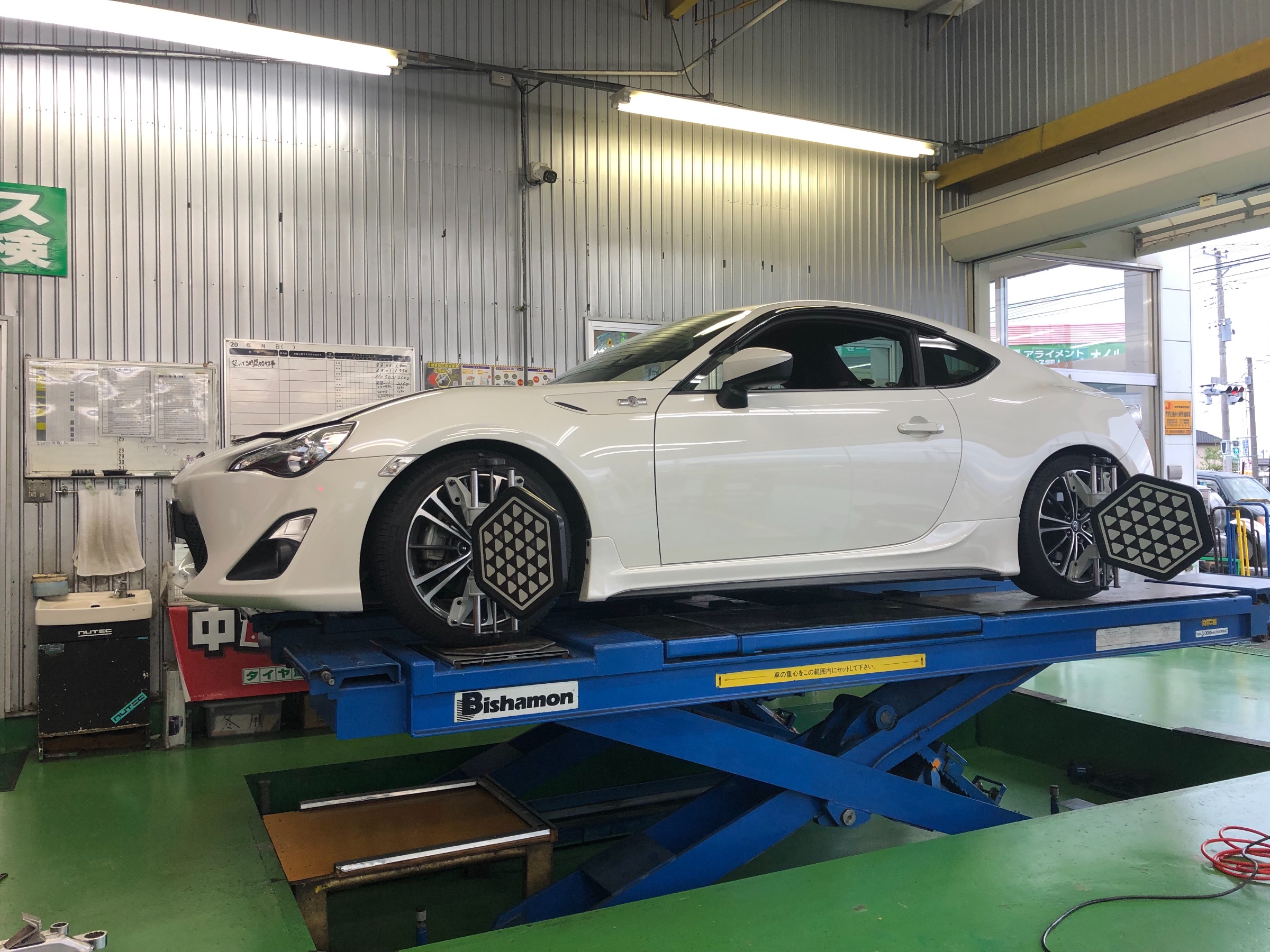 車高の上げ下げによりアライメントにくるいがでますので今回作業をいただきました!