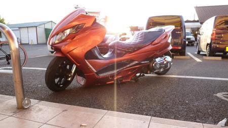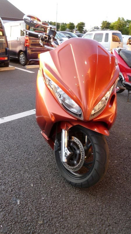 250ccのスカイウェイブCJ44Aです。カラーはオレンジでエアサス、ロンスイ、40mmロングです。
