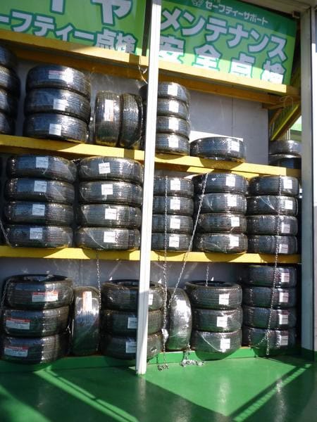 雨とか風とかでタイヤに水が入ったりほこりがかぶったりするので、タイヤにラップをまいているんです(^^)v