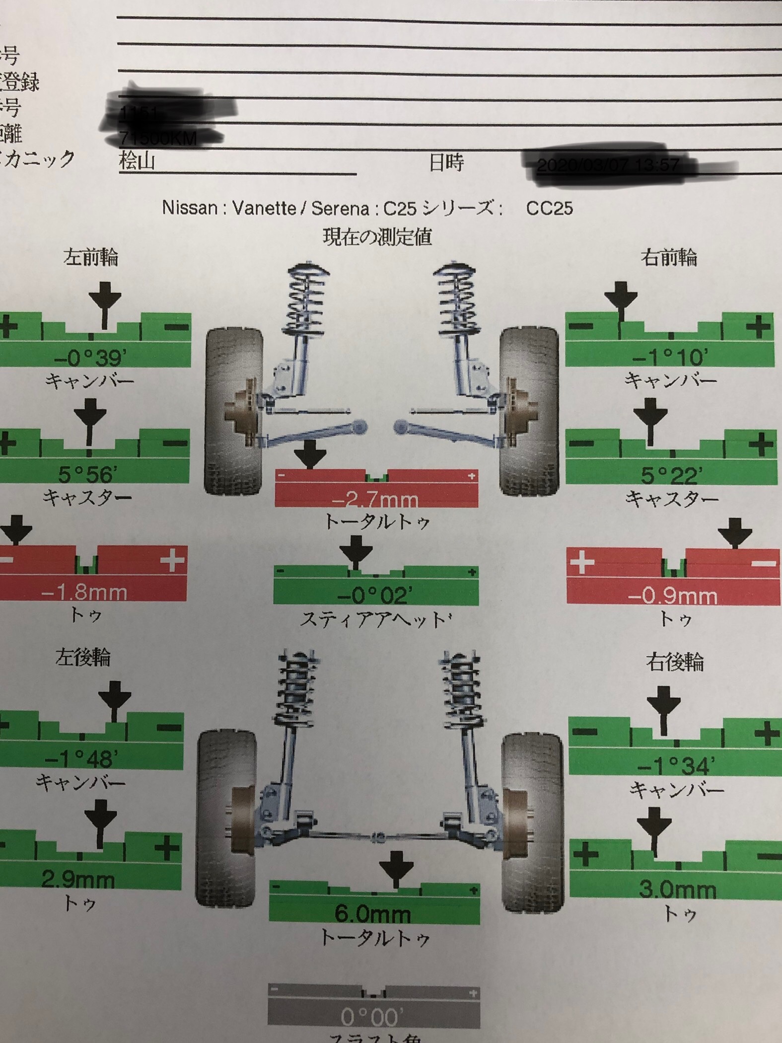 セレナ タイヤ交換 アライメント