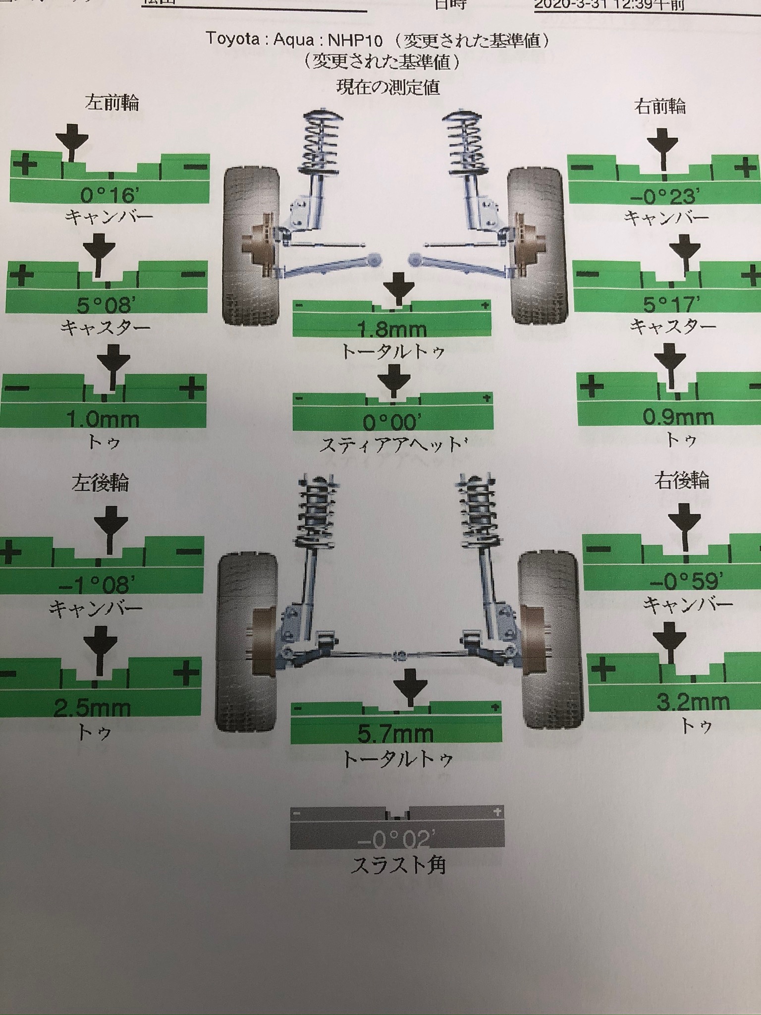 アクアのアライメント依頼を承りました。早速作業に入らせていただきます。