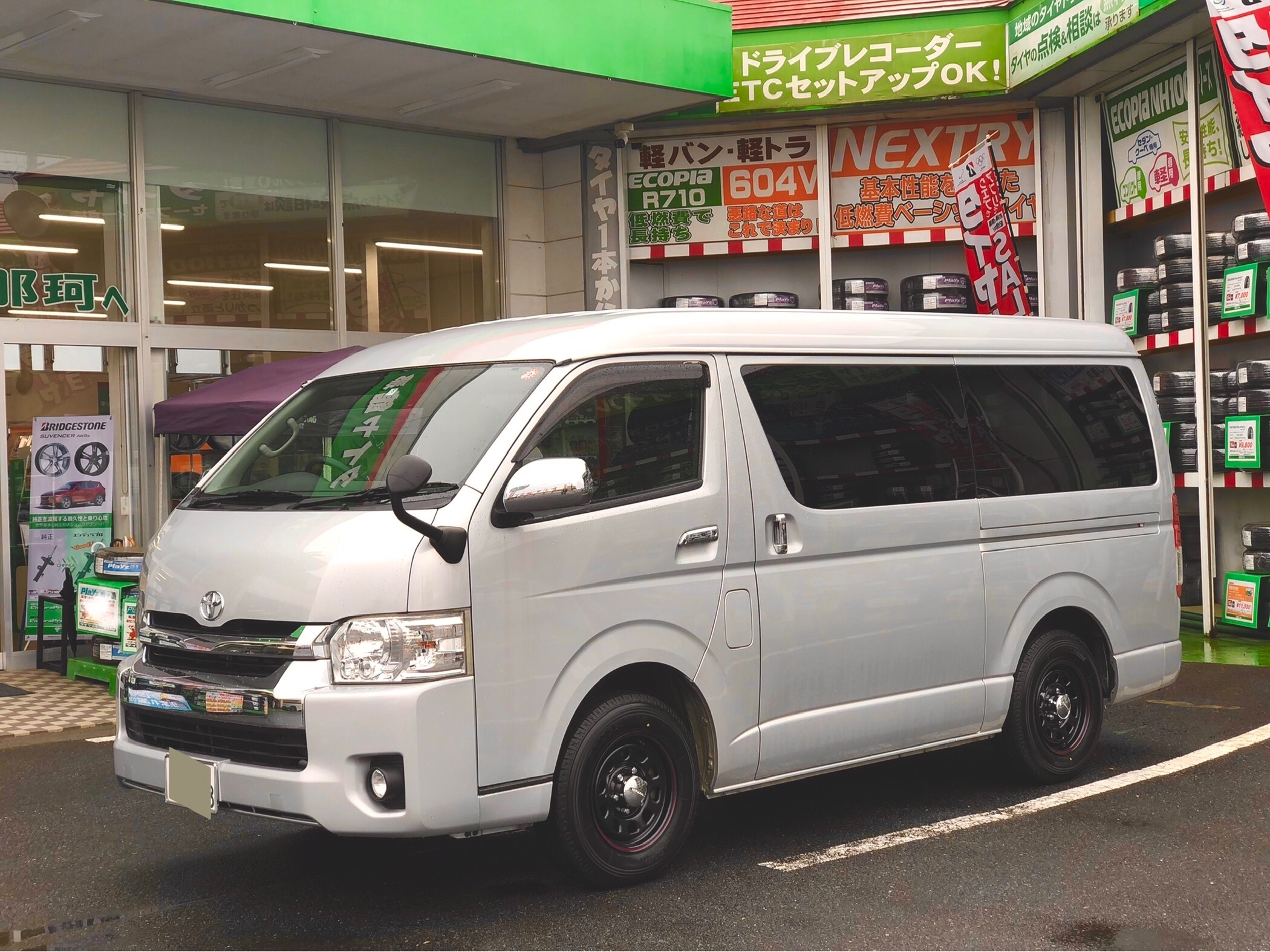 ハイエースのタイヤ、ホイールを取り付けさせて頂きました。