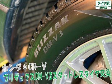 こんにちはタイヤ館那珂店です☆ 本日ご紹介させて頂く作業は、先日SUV専用ブリザックスタッドレスセット品をお取り付けしましたCRーVの作業になります♪ 装着しましたスタッドレスタイヤはSUV専用のブリザックDM-V3を装着しました♪ DM-V3は「アクティブ発泡ゴム2」のグリップ力をSUV...