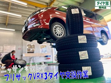 こんにちはタイヤ館那珂店です☆ 本日ご紹介させて頂く作業は、ご予約頂いておりましたセレナにブリザックスタッドレスタイヤの取付作業を行いました♪ 交換しましたスタッドレスタイヤは、信頼と実績のブリザックVRX3になります☆彡 前モデルVRX2より氷上ブレーキ20%向上、摩耗ライフ17%...