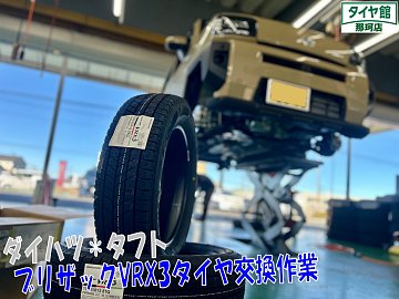 こんにちはタイヤ館那珂店です☆ 本日ご紹介させて頂く作業は、ご予約頂いておりましたタフトのブリザックスタッドレスタイヤの取付になります♪ 交換しましたスタッドレスタイヤは、信頼と実績のブリザックVRX3になります☆彡 ブリザックVRX3はVRX2同様に親水作用による吸水力を備えつつ...