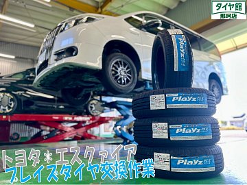 こんにちはタイヤ館那珂店です☆ 本日ご紹介させて頂く作業は、エスクァイアのサマータイヤ交換&アライメント調整作業になります♪ タイヤはミニバン専用タイヤプレイズPX-RVⅡ 195/65R15 4本交換になります☆彡 プレイズPX-RVⅡは、濡れた路面でもしっかり曲がる、しっかり止まるを追...