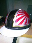 今回は、簡単にヘルメット紹介します!!\(^o^)/ 市販で売っているコルクハンをカラーリング日章にマイメロにしてみました きれいなしあがりに、さすが鈑金屋(*^。^*) ピンポイントのマイメロがお気に入り!!( ^)o(^ )