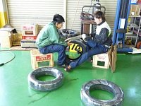 皆さんこんにたは!! これ、何をしてるか分りますか?! 雨とか風とかでタイヤに水が入ったりほこりがかぶったりするので、タイヤにラップをまいているんです(^^)v これけっこう簡単そうに見えるんですけど難しいですよ!! ほとんど自分がまいています(T_T) 最初よりは綺麗にまけるようになりまし...