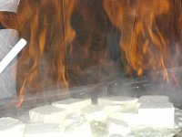 とうとうデザートです♪ しかしこれもかなりのオススメ★〖アイスクリームの鉄板焼〗 (@´・ω・)!?アイス焼いたらとけちゃうでしょ!? しかし、とけないと専務は言う… ぬぅ(; ̄- ̄)… それはこの豆腐にように見えるアイスクリームを ←こうして(フランべしても全部はとけない) ←こうして(ソース...