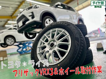 ライズにスタッドレス&ホイールセット品のお取付作業を行いました☆彡 スタッドレスタイヤはブリザックVRX3&ホイールはトップラン M7の組み合わせになります♪ ブリザックVRX3はブリヂストンスタッドレスの中で凍結路面の効きがダントツでいいタイプになりますのでご安心してお乗り頂ける...