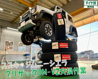 まだまだ寒い日が続きますね。。。 今回ご紹介させて頂きますのはジムニーシエラのブリザックスタッドレス交換作業になります☆彡 タイヤはブリザックDM-V2 195/80R15 4本交換です♪ サマータイヤが交換時期になりこの時期に交換するならスタッドレスということで純正ホイールへ取付☆ 取...