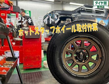 ご予約頂いておりましたトライトンにホイールをお取り付けいたしました☆彡 ホイールはホットスタッフから販売されておりますマッドクロスレンジャー(カラー:マットブロンズ)17インチになります♪ インチダウンというかたちになりましたが、元の高級感のあるスタイルからオフロード車チックになり...