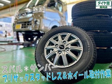 サンバーにスタッドレス&ホイールセット品をお取付しました☆彡 スタッドレスはW300になりましてリーズナブルなスタッドレスになります♪ ホイールはトップランKR10になりまして去年発売されたホイールになります☆ ボディー色にダークグレーカラーのトップランKR10がバッチリ似合ってい...