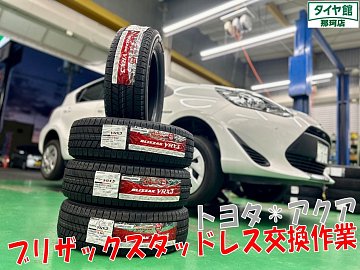 アクアにスタッドレスタイヤ交換を行いました☆彡 取付しましたスタッドレスタイヤはブリヂストンスタッドレスの中で凍結路面の効きがダントツでいいブリザックVRX3を装着♪ 取付は当店お馴染みのセンターフィットでしっかり締め付けまで行いました☆ ※全ての商品について上記の性能・効果の発揮を...