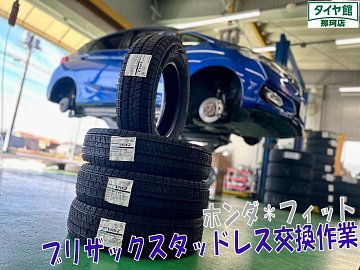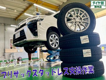 ご予約頂いておりましたフィットのスタッドレスタイヤ&ホイールセットの取付作業を行いました☆彡 スタッドレスタイヤはブリザックVRX2&ホイールはブリヂストン トップランKR10の組み合わせになります♪ VRX2の「アクティブ発泡ゴム2」は水路の表面を親水性素材でコーティングし、気泡...