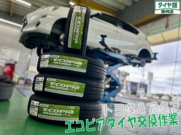アクアのタイヤ交換作業を行いました☆彡 タイヤはエコピアNH200C 175/65R15を装着しました♪ エコピアNH200Cは摩耗してもウエット性能が低下しにくいので、雨の日の安心感が長持ちします☆ 取付作業は当店お馴染みのセンターフィットを使用しホイールが車両側の芯にくるように締め...