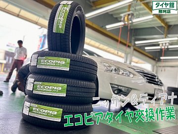 ティアナのタイヤ交換作業ご依頼です☆彡 タイヤはエコピアNH200 215/60R16を装着しました♪ エコピアNH200は摩耗してもウエット性能が低下しにくいので、雨の日の安心感が長持ちします☆ エコピアは新車装着タイヤと同等の性能になりますのでお車の性能を落とさずご使用できるかと...