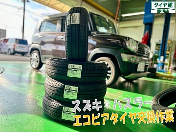ハスラーのタイヤ交換作業ご依頼がありました☆彡 タイヤは新車装着同等の性能レベルエコピアNH200Cです♪ エコピアNH200Cは摩耗してもウエット性能が低下しにくいので、雨の日の安心感が長持ちします☆ 取付作業は当店お馴染みのセンターフィットを使用しホイールが車両側の芯にくるように...