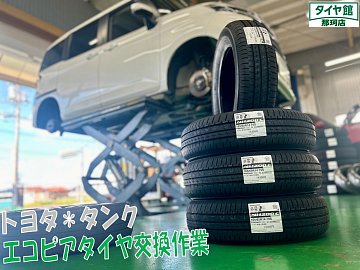 タンクのタイヤ交換作業を行いました☆彡 タイヤは新車装着タイヤ同等性能のエコピアNH200C 165/65R14になります♪ エコピアはタイヤが摩耗してもウエット性能が低下しにくいので雨の日の安心感が長持ち&前モデルNH100Cよりも摩耗性能がUPしておりますので長持ちしやすくなっ...