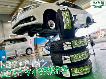 プレミオのタイヤ交換作業を行いました☆彡 タイヤはエコピアNH200C185/65R15を装着しました♪ エコピアNH200Cは摩耗してもウエット性能が低下しにくいので、雨の日の安心感が長持ちします☆ 取付作業は当店お馴染みのセンターフィットを使用しホイールが車両側の芯にくるように締...