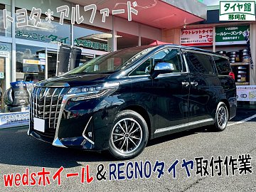 アルファードにタイヤ&ホイールのお取付作業を行いました☆彡 タイヤはREGNO GR-XⅢ TYPE RV & weds LEONIS RTになります♪ REGNO GR-XⅢ TYPE RVは今シーズン新発売のタイヤになります☆ 特徴としては、揺れやすく社内音が目立ちやすい後部座席においても、上質な空間品質を実現 RV車両特有のふらつ...